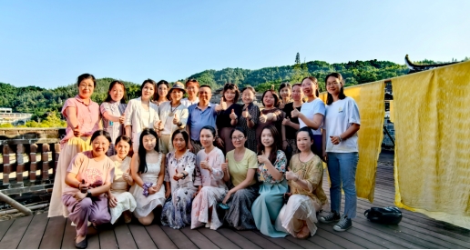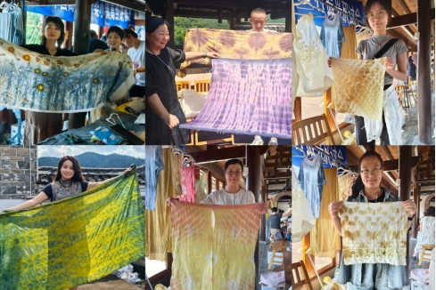 8月4日至8月9日,研修班开展了形式多样、内容丰富的教学与创作活动。期间,蓝染、乌树染色、茜草染色等传统工艺在大师的指导下得以传承和创新。湖南工商大学教授、硕士生导师于肖飞,湖南省设计艺术家协会服装设计专业委员会秘书长唐伟,国家级非遗培训专家导师刘善林教授,湖南工商大学的唐雪梅教授以及广西科技大学副教授陈勤学博士,分别就植物染的未来发展、AI与时尚的融合、中国大漆纺织品实验及首饰设计与鉴定、旅游文创产品设计创新等专题进行了学术讲座。