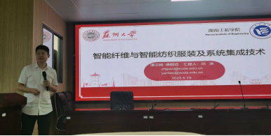 随后,潘志娟教授团队的王哲和闫涛两位老师依次为师生代表带来了题为《载金属双原子微纳米纤维的构建及其锌空气电池应用》和《智能纤维与智能纺织服装及系统集成技术》的学术讲座。