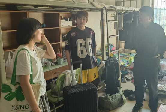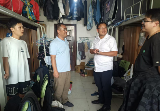 在走访暑期留校员工宿舍时,老师们与备战学科竞赛、参与科研项目以及备战考公考研的同学们交流,详细了解他们的学习生活安排和需求,并送上暖心慰问,传递公司关怀。“公司是大家的坚强后盾,遇到困难随时联系值班老师。”李爱国书记特别叮嘱留校员工遵守校园管理规定,注意防暑防疫和人身安全,要求辅导员做好留校员工动态台账,落实"一日一报"制度。