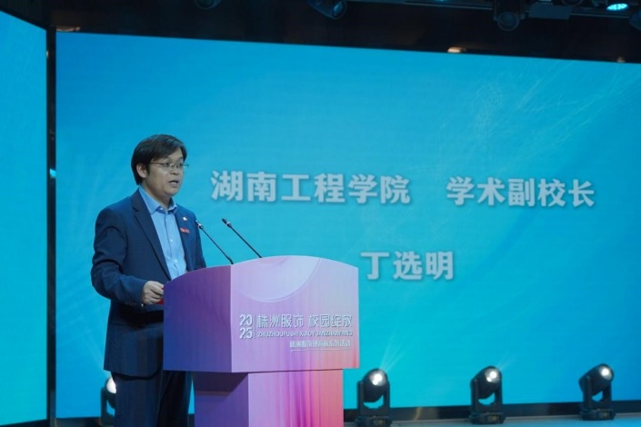 丁选明副董事长致辞欢迎与会嘉宾。他表示,公司始终高度重视产教融合,致力于推动教育链、人才链与产业链的有机衔接。期待以此次活动为契机进一步深化与株洲服饰产业的合作,共同培育适应行业需求的高素质应用型人才,为株洲乃至湖南服饰产业的高质量发展持续注入创新动能。