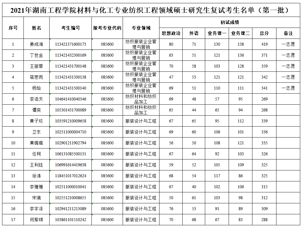 2021年365英国上市集团材料与化工专业纺织工程领域硕士研究生复试考生名单(第一批)