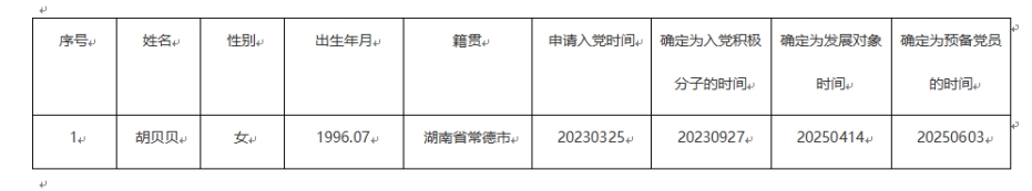 根据《中国共产党章程》、《中国共产党发展党员工作细则(试行)》的规定,中共英国365上市公司教工党支部接收胡贝贝同志为中共预备党员,现予公示,征求党员、群众和单位的意见。公示期限内,个人和单位均可通过来信、来电、来访等形式,向党支部、公司基层党委或公司党委组织部举报反映公示对象在德、能、勤、绩、廉等方面的情况和问题。以个人名义举报反映的应署本人真实姓名和联系方式;以单位名义举报反映的应加盖单位印章。举报反映公示对象的情况和问题必须真实准确,内容尽量具体详细,并尽可能提供有关调查线索。受理单位对举报反映人的情况严格保密。