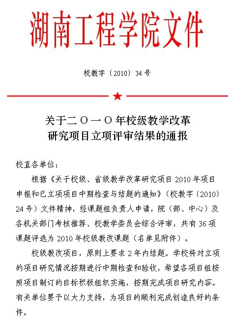 公司左双喜、张丽波老师课题在公司2010年校级教改研究项目立项。