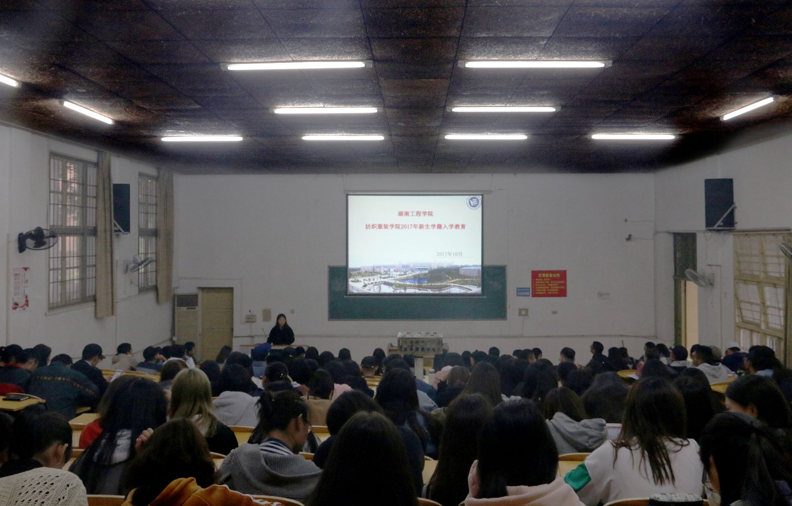 2017年10月17日下午14:30,公司服装与服饰设计专业2017级新生入学专业教育与学期教育通知在电教105举行。出席此次大会的有公司副经理陈晓玲,服装专业教研室全体老师、新生班级班主任以及全体大一新生,入学专业教育由陈晓玲主持。入学专业教育在一段的简洁明晰的专业介绍视频下拉开帷幕,陈晓玲副经理向全体新生表示欢迎,并依次介绍了服装与服饰设计教研室全体专业老师,让同学和老师进行一次近距离的接触。