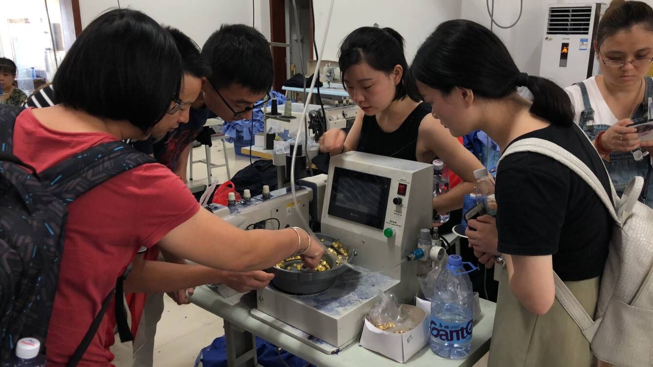 参观操作自动钉扣机