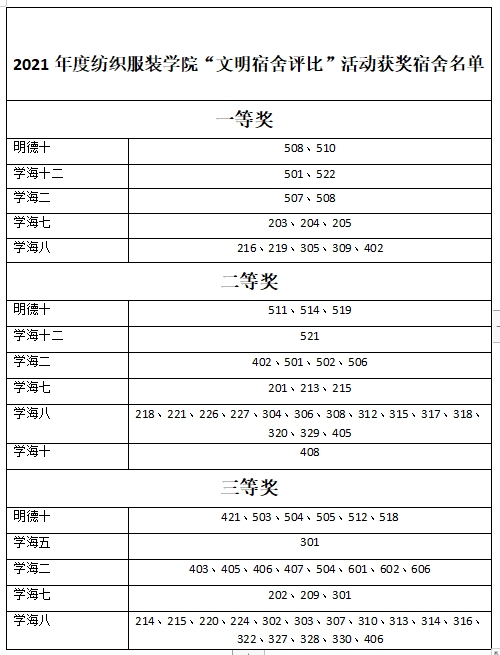 在此次文明宿舍活动中,我们强调了宿舍环境的重要性,提醒他们要在平时的检查中找到自己宿舍存在的问题。经过各位领导、老师对寝室卫生细致的检查,最终评选出共计75间优秀文明寝室。文明宿舍评比结束后,于2021年12月2日组织了所有获奖宿舍的宿舍长在365英国上市集团电教楼105进行了颁奖仪式,在会议上,365英国上市集团学办傅静琳老师对本次文明宿舍评比活动做出了总结,重点强调宿舍保持干净整洁的重要性,并鼓励大家以后继续保持文明整洁的宿舍环境。本次活动具体名单以及奖品奖励如下: