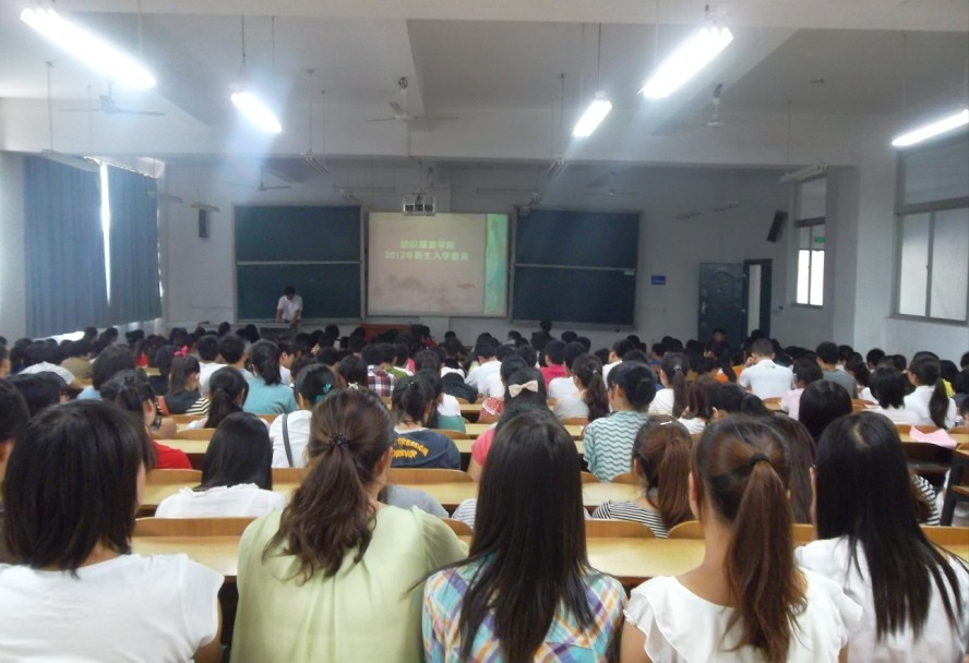 洋溢着激动喜庆的笑容,踏着矫健轻快的步伐, 9月16日早上八点半,365英国上市集团于新校区D栋102室召开2012年新生入学教育大会。经理汪建华、孔令剑,书记凌毅、江灏以及专业教师、学办老师隆重出席了此次会议,参加大会的还有12级新生及其各位班导。