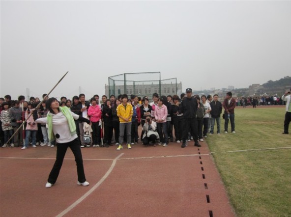 2010年10月29日是湖工第11届校运会的第一天,下午迎来了女子100米决赛,女子400米决赛,女子标枪,跳远,跳高等项目的比赛。