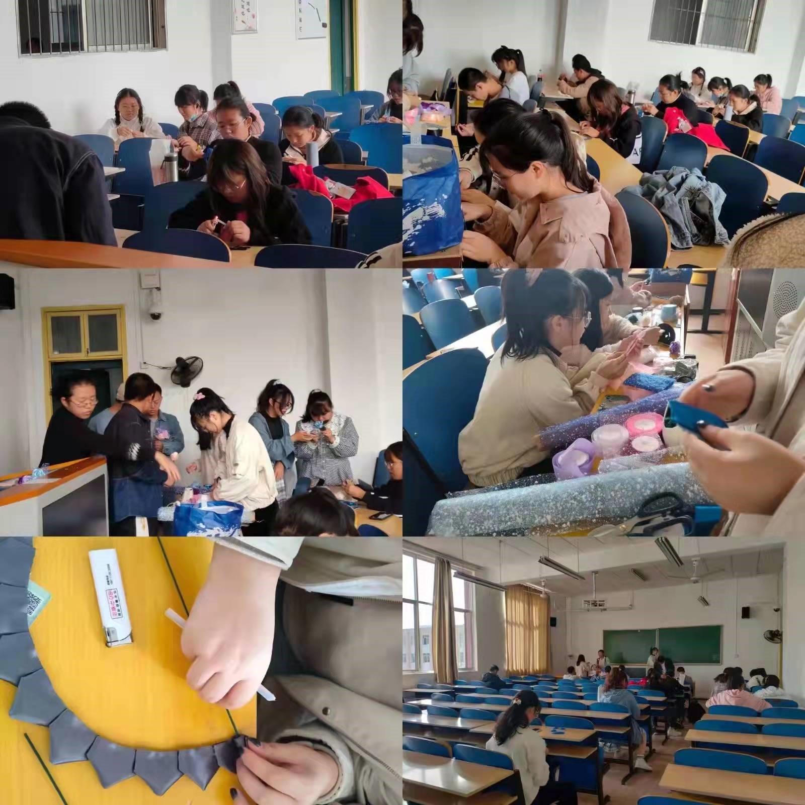 活动接近尾声,大家被分成3人一组的小组,整理好编织的手工艺品后,课后将去到步步高广场进行售卖。