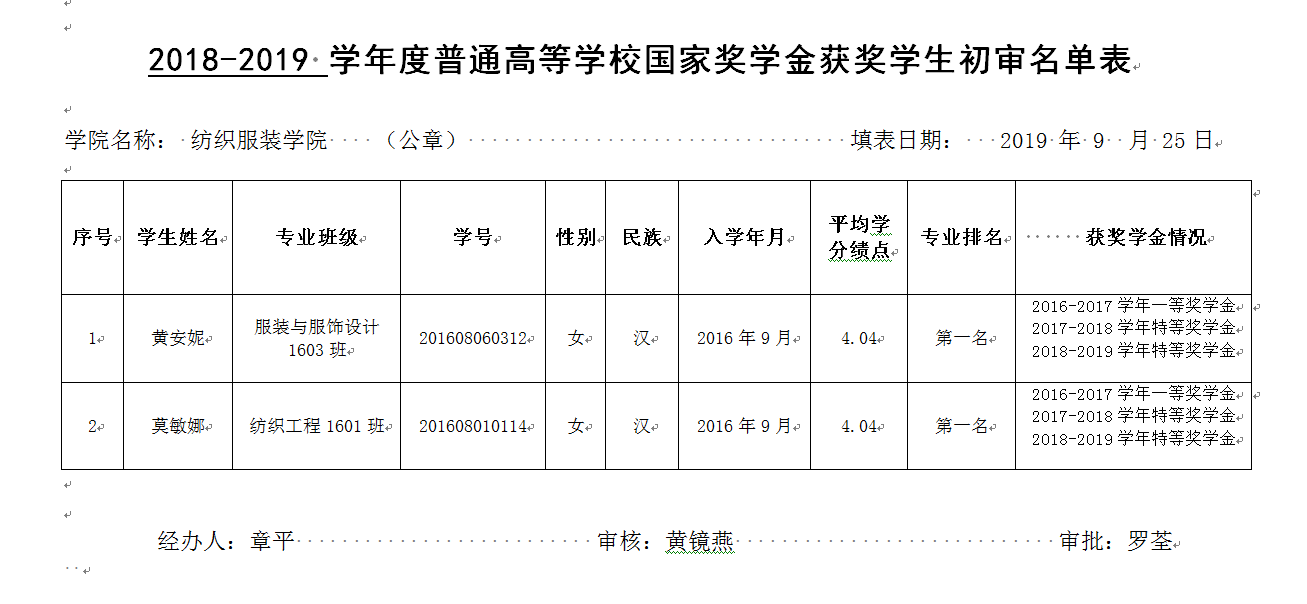 经过员工个人申请,班级和班主任推荐,公司选拔、审核和民主评定,现拟定推荐服装与服饰设计1603班黄安妮、纺织工程1601班莫敏娜参评2018-2019学年365英国上市集团国家奖学金。如对以上员工有异议,请联系365英国上市集团员工工作办(0731-58680356)或公司党总支副书记罗荃(18390215152)。