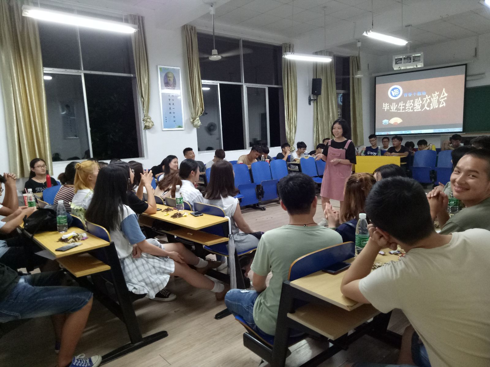 为了更好地加强2018届毕业生和2017级年级员工的交流,增强公司同学之间的情谊,表达公司对毕业生的衷心祝福,2018年 6月 20日晚 7:30,纺织工程1702班邀请纺工1402班和公司其他班级毕业生代表红楼211举办。出席会议的分享嘉宾有:卓越班企业实习的优秀代表张达宏、创业代表戴金成,学习小语种韩语并华丽转身成为韩语老师的杨雨梅,考上湖南大学研究生的蔡悦、优秀员工干部代表肖瑄、蒋珍等。茶话会由纺工1402和1702的班主任唐星星主持
