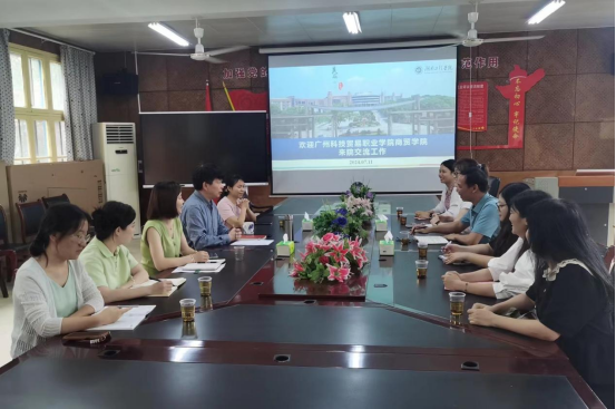 7月11日下午,广州科技贸易职业公司商贸公司党总支书记李建辉一行6人来公司交流员工工作。公司党委书记李爱国、副经理陈晓玲、相关教师和辅导员代表参与座谈交流。