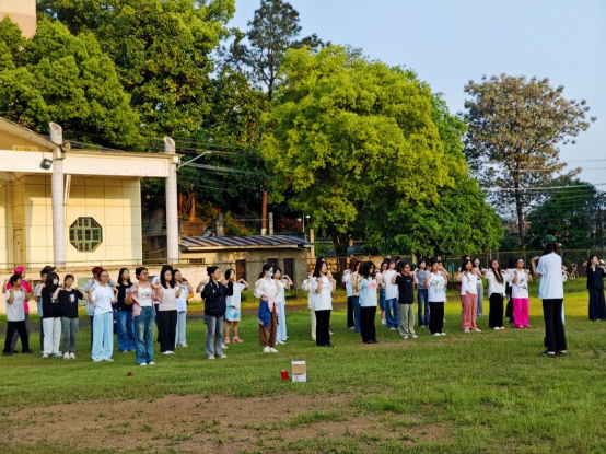 活动现场,同学们身着轻便服装,精神饱满。在领练同学的带领下,大家动作整齐划一,一招一式尽显从容与专注。八段锦作为国家级非物质文化遗产,融经典动作,帮助同学们舒展筋骨、调节呼吸、放松身心。当千年导引术与青春活力相遇,传统文化的魅力在晨光中熠熠生辉。