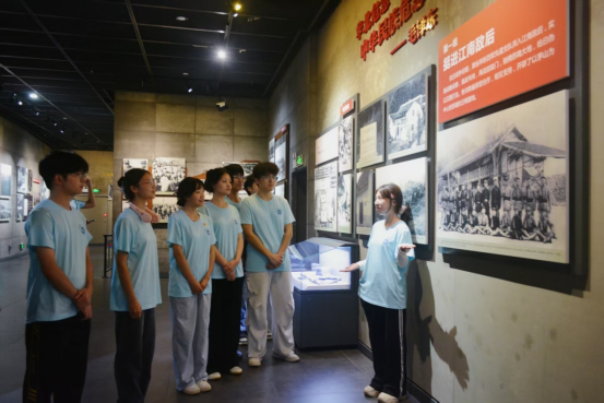 在粟裕纪念馆内,实践团队创新采用"观摩—讲解—体验"三阶教学法。面对粟裕大将铜像,队员们通过庄严的鞠躬致敬和重温入党誓词仪式,建立起与革命先辈的精神联结。特别值得一提的是,团队首创"学员变讲师"的互动模式,让青年学子从被动接受转为主动传播,通过角色转换深化认知。团队成员钟师琦在讲述粟裕将军六次负伤、头部残留三枚弹片的事迹时,创新采用"时空对话"形式,将历史现场转化为生动的教育课堂。