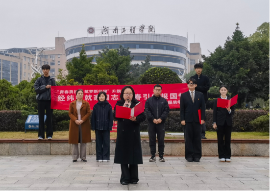 服装与服饰设计2202班卢昌业作为员工代表在国旗下发言。他呼吁青年学子将个人成长融入纺织服装行业发展,以专业能力践行青春使命,把理想抱负汇入祖国建设的时代洪流,努力让中国设计在世界舞台上绽放光彩。