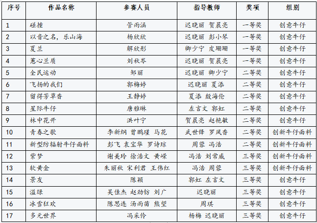公司学子在此次大赛中喜获一等奖4项、二等奖7项、三等奖6项,参赛获奖作品均来自于《服饰图案设计》、《织物结构与设计》等课程的实践成果。其中2019级服装设计与工程专业管雨涵的作品《碰撞》(指导老师:迟晓丽、贺晨亮)、杨欣欣《以“音”之名 乐山海》(指导老师:迟晓丽、彭小琴)等获得一等奖;纺织专业李新纲等《青春之歌》(指导老师:武世锋、罗凤香)、彭飞《新型防辐射牛仔面料》(指导老师:周蓉、冯浩)等获得二等奖。