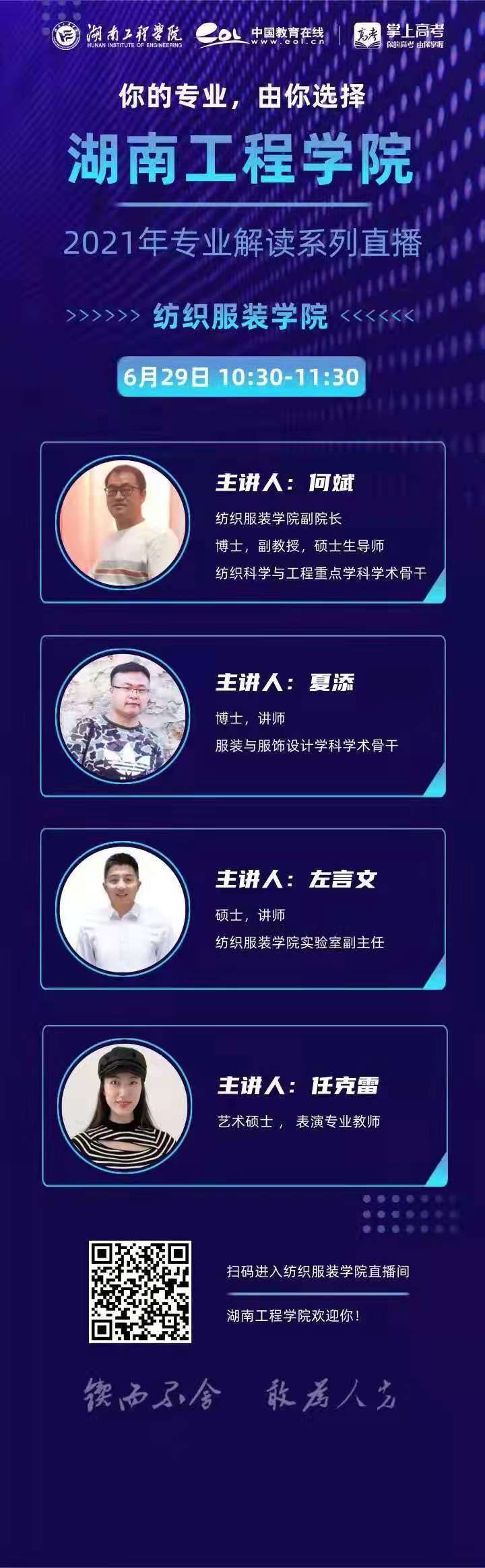直播过程中,同学们针对专业培养、社会实践、就业去向等情况踊跃提问,三位主讲人和教研室教师组成的解读团通过屏幕和讨论区对员工的问题进行了细致的解答,讨论区交流如火如荼。据统计直播当场点击量达5000人次,直播后通过微信和QQ进行专业咨询的考生络绎不绝!(欢迎考生们扫描下图二维码观看回放)