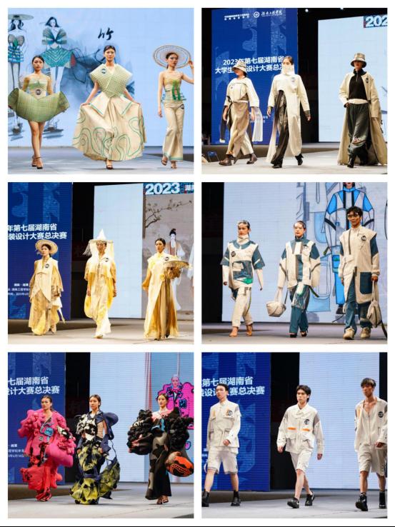 总决赛设置有服装配饰设计和服装成衣设计两个赛项,分别以陈列展览和服装走秀的形式加以演绎。服装秀决赛舞台上,伴随着音乐的旋律,由公司服装表演专业模特担纲及湖南师范大学表演专业模特助力加以演绎的一款款别出心裁、匠心独运的服装成衣设计作品赢得了观众阵阵热烈掌声。通过创意无限的服装,新锐设计师们丰富的想象力、敏锐的时尚感和超强的设计能力彰显无遗。不同风格交相辉映、彼此碰撞,多维的美学感知有机融合,充分呈现了对当代时尚的解读和对未来设计趋势的思考与探索。服装配饰设计决赛现场,设计作品构思新颖,作品风格多样,设计元素多元化,制作工艺精美,兼具时尚性与市场性,处处体现着莘莘学子精益求精的工匠精神。
