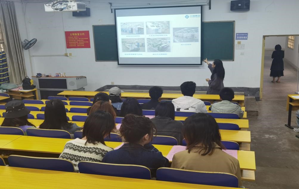 2021年03月31日下午16:00,我们在公司北苑电教楼101迎来了湖南云锦集团股份有限公司的宣讲会,在校纺织工程17级毕业生参加,此次宣讲会旨在帮助员工了解行业需求、提高行业认识,并提供高质量的就业岗位。