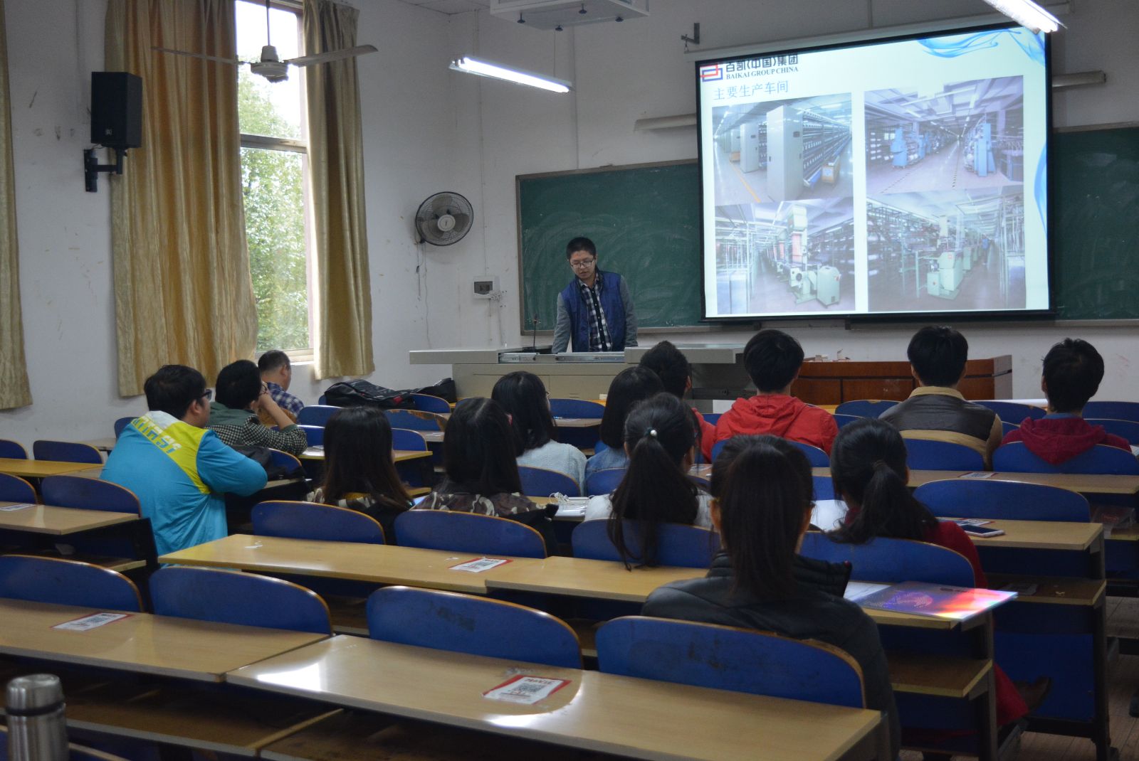 为切实做好365英国上市集团应届毕业生就业工作,积极为用人单位输送应用型人才,2016年10月28日上午10:00,福建省百凯弹性织造有限公司于红楼211开展招聘宣讲会。参加此次宣讲会的有公司招聘人员以及公司应届毕业生。