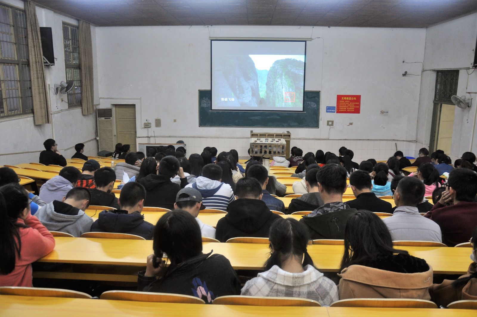 会议伊始,招聘负责人通过放映浙江健盛集团江山针织有限公司的宣传片。公司资深HR负责人戎总以ppt的形式就公司的规章制度、福利待遇、企业文化、现有的产业结构等几个方面向同学进行介绍公司各方面的现状,其中提到健盛集团共有三大产业基地,企业采用“双通道晋升”的方式来提拔员工,注重员工的素质等方面。姜风现场解答了公休、试用期的工资、公司产业方向未来是否会有扩展、以及该企的外贸方向等疑问。