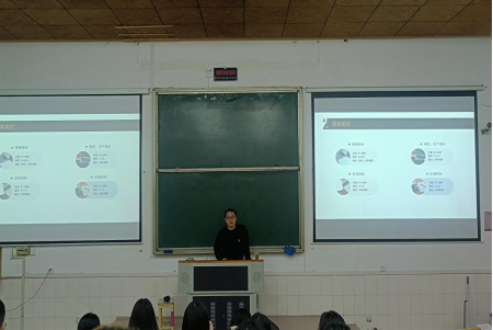 为了使同学们更好地了解公司文化、背景和岗位需求,浙江懿纱纺织科技有限公司人事负责人单经理通过PPT展示详细介绍了公司概括、公司招聘岗位及需要掌握的基本技能,并现场为同学们进行了答疑解惑。