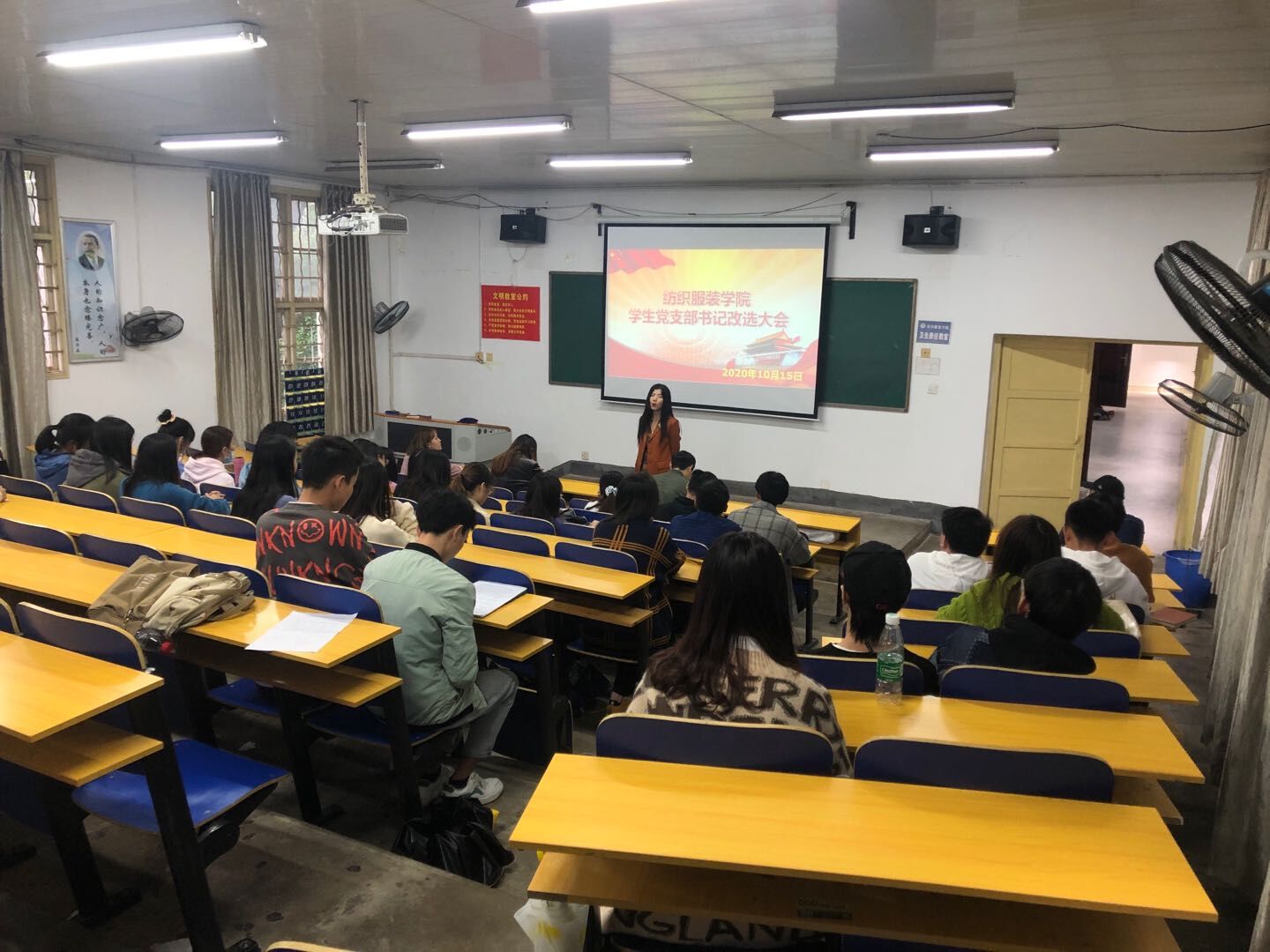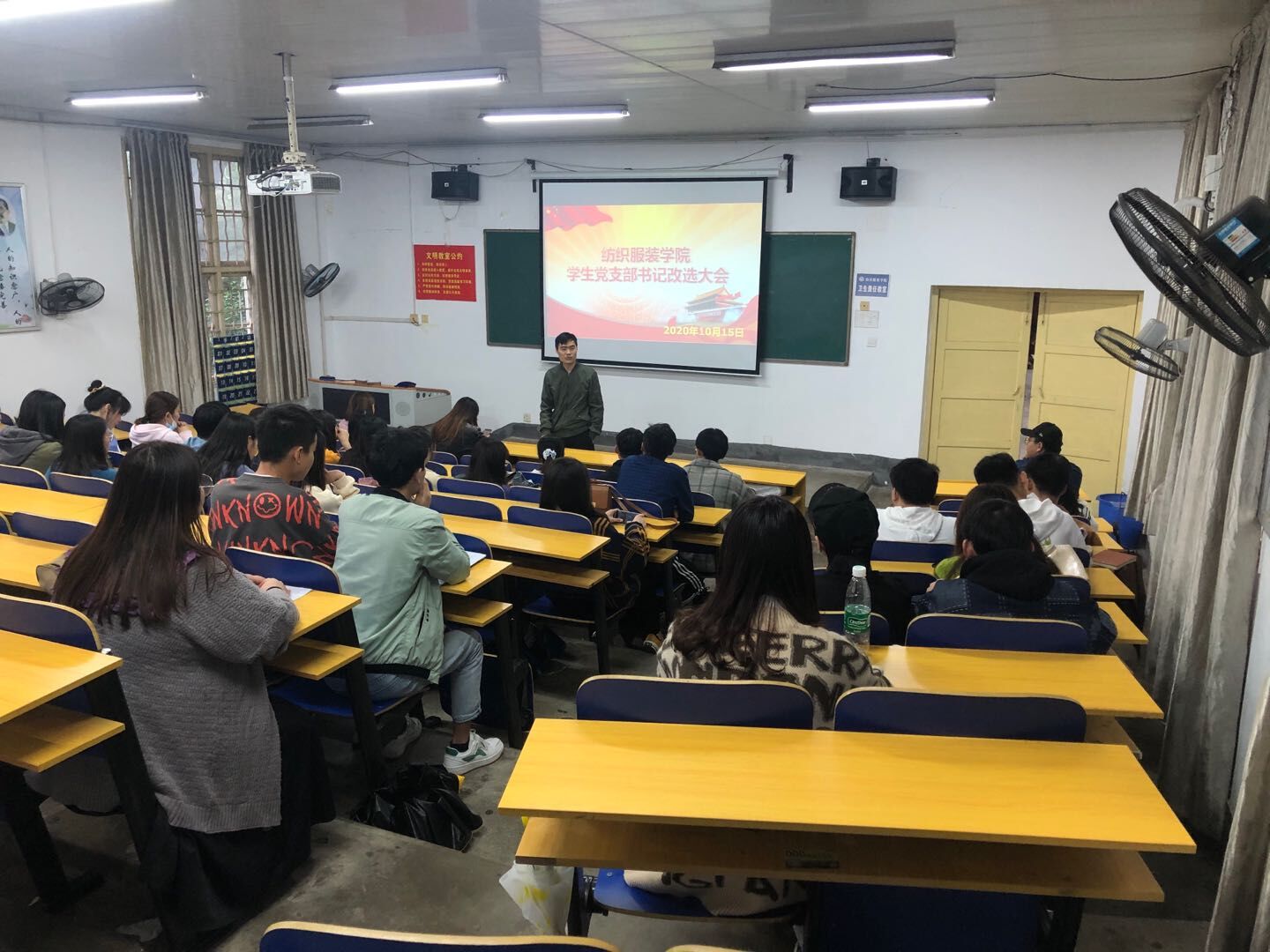会议开始,党总支副书记罗荃,学办主任张轶主持并发表讲话。并且对上一届党支部工作进行汇报,主要对上一届的基层党组织建设以及组织生活的开展,还有党员参加志愿活动的积极性进行总结会。并且对接下来党支部主要的工作进行了简单的汇报,主要包括新一期发展对象的发掘以及培训。