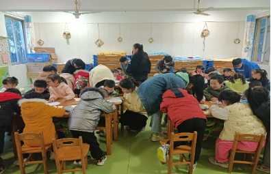 下午3点,在幼稚园园长的带领下,党员们来到了小朋友们的教室,迎面而来的便是小朋友纯真的笑脸和热情的欢迎声。首先,党员们带领小朋友学习歌曲并合唱《我和我的祖国》,虽然小朋友还是牙牙学语,却也是全程热情在线,跟着员工党员认真学唱,用他们幼稚的童声表达着对祖国的爱。学唱以后,党员同学向小朋友讲述《鸡毛信的故事》,“海娃几岁了啊?”“鸡毛信到底长什么样子啊?”,故事激发了小朋友的无限好奇和兴趣,踊跃提问与“海娃”相关问题。“小朋友们,你们眼中的海娃是什么样子的呢?我们一起把他画下来吧”。在党员同学的辅导下,小朋友纷纷拿出纸笔画出他们心目中的海娃形象图。活动最后,员工党员带领小朋友一起以国旗为主题制作了精美贺卡。
