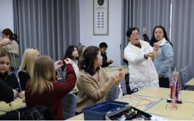 中外员工共编中国结艺 感受中华服饰手工魅力
