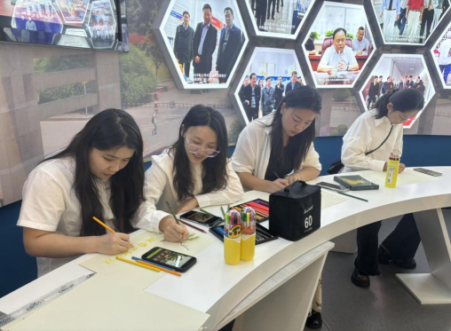 在校史馆员工讲解团的带领下,同学们有序参观校史馆,大家驻足观看公司各个时期的教学成就和历史照片,感受公司厚重的历史底蕴,不时发出赞叹之声。校史馆还特别设置了“寻宝”之旅互动游戏,同学们手持线索卡,在馆内找到隐藏的宝藏进行打卡拍照,并完成绘制校园风景图,现场气氛热烈。