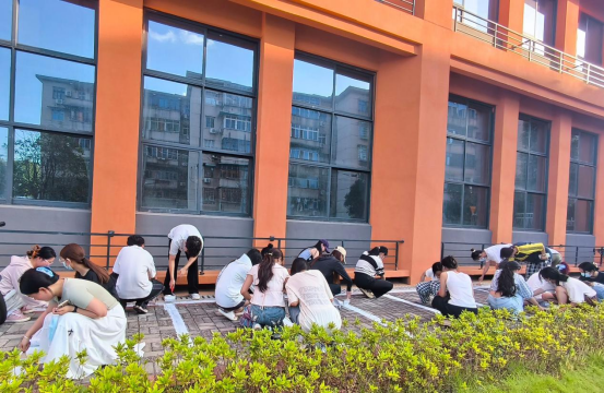 活动现场,在校保卫部提供的的专业绘制工具的助力下,员工党员们将美纹纸胶带、滚刷、标线漆等工具与纺织学科知识相结合,对停车位进行精准测绘。"我们运用纺织工程中的经纬纱线排列原理,确保每条标识线间隔均匀、角度精准。"员工党员龙俊杰道。党员们分工明确,有的手持美纹纸胶带定位,有的弯腰涂刷标线。尽管烈日当空,但大家干劲十足,经过2小时连续作业,原本闲置的停车区域被规整出清晰网格。