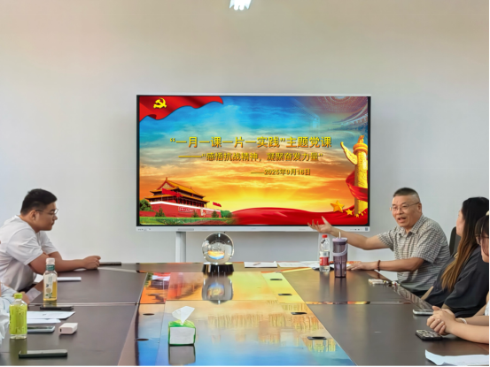 活动伊始,组织员吴开俊老师别开生面,以一堂“诗歌中的抗战”主题党课拉开序幕,他声情并茂地朗诵一首红色诗歌,将一段厚重的抗战史娓娓道来,彻底打破了“你讲我听”的传统模式。在吴老师的感染下,员工党员们纷纷主动上台朗诵抗战诗歌。大家在深情的朗诵中沉浸式感悟信仰力量与家国情怀,深刻体悟抗日战争精神的伟大与崇高。随后,支部党员领学了习近平总书记关于党的光荣传统和优良作风的重要论述,中央八项规定精神及其实施细则。大家结合自身学习和工作实际,分享感悟与收获,纷纷表示要将所学内容内化于心、外化于行,以更严的作风、更高的标准要求自己,发挥党员先锋模范作用。