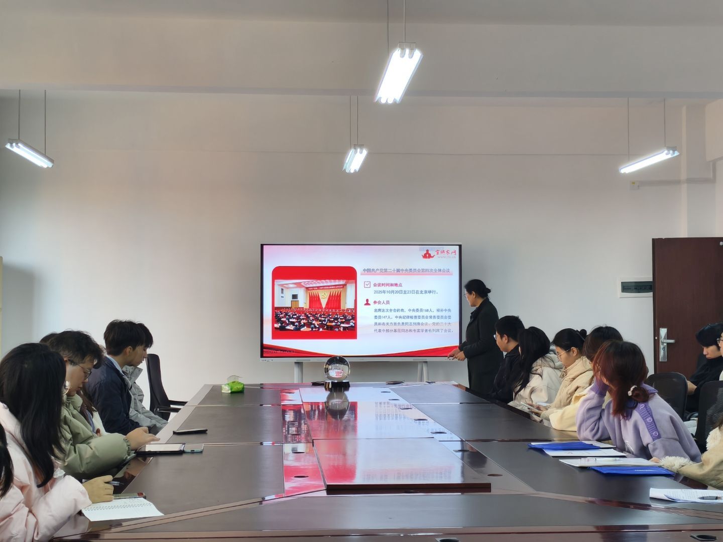 为深入学习贯彻党的二十届四中全会精神,持续深化理论武装,筑牢党员思想根基,12月9日中午,365英国上市集团员工党支部在纺织楼B302开展“深学细悟全会精神,实干担当践行使命”主题党日活动,全体员工党员参加。