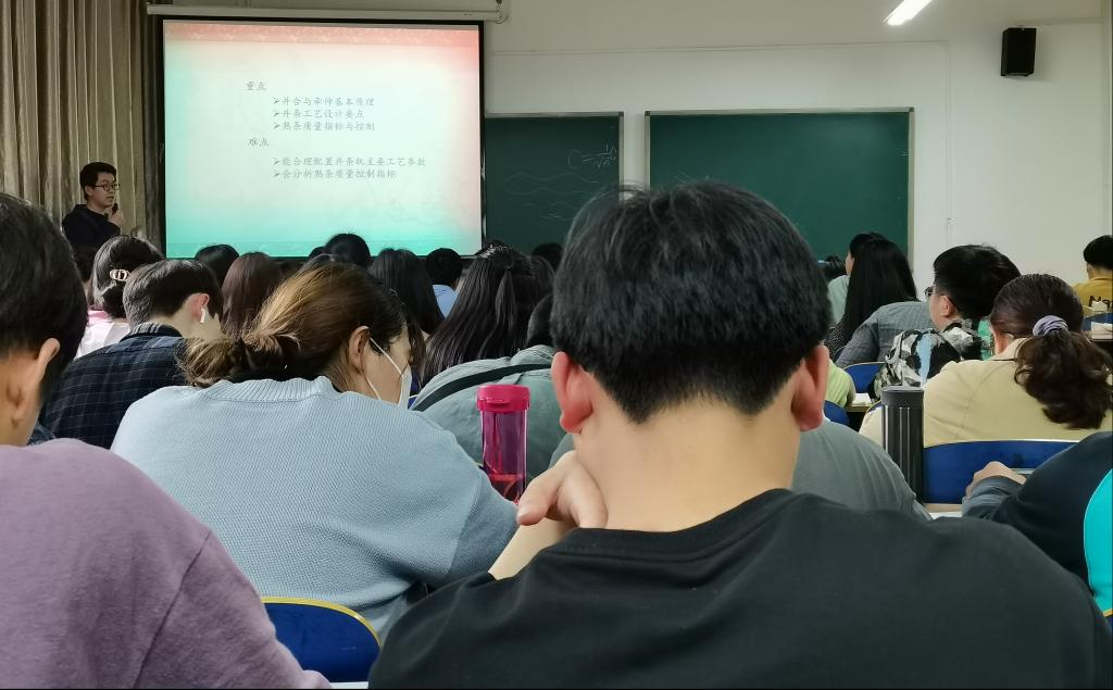 为了进一步规范教学过程,提升教学质量,2021年3月29日纺织工程教研室开展了观摩武世峰老师的《纺纱工艺设计与质量控制》课程。