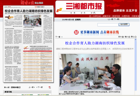 纺织工程专业综合改革被确定为校级综合改革项目,构建“纤维纺织品智造与时尚产业公司”开展纺织新工科建设。2019年纺织工程专业被评定为湖南省一流应用特色专业。