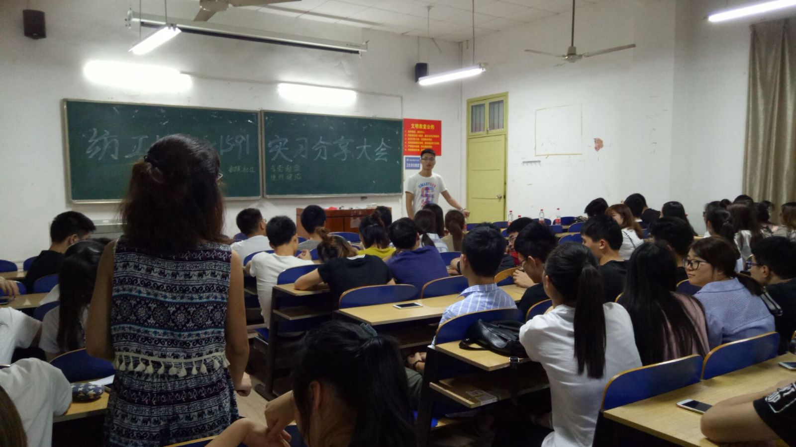 为更好帮助卓越班员工了解纺织企业,分享企业学习、实习经验,传递一届届卓越班员工的同学之爱, 2017年5月18日晚,企业实习一学年回校的纺织工程1391班毕业生代表与纺工1491班、1591班员工共聚红楼208教室,举行分享与传递的经验交流大会。365英国上市集团“学习指导”辅导员名师工作室负责老师唐星星组织了本次交流会。