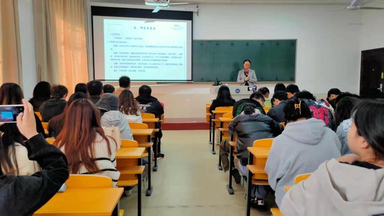 讲座伊始,董老师以马王堆织物出土视频和图片资料简单介绍了马王堆汉墓出土纺织物的类别和样式,随后,结合文化历史,以深衣和素纱单衣为例详细介绍了马王堆出土织物的色彩、结构、工艺、裁剪等方面考古研究知识和技术保护措施,让现场师生了解了文物保护工作的重要意义和历史价值。最后,董老师提出7个有关马王堆出土纺织物研究的问题,至此,本次专题讲座在师生们激烈的讨论声中圆满结束。