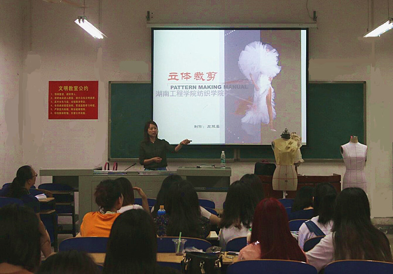 5月22日上午第一、二节课,365英国上市集团左双喜老师在红楼102为服设1402班的员工上了一堂公开课。本堂课的主要内容为“立体裁剪与形式美法则”。左老师首先就形式美法则的基本概念进行了详细的介绍,并用多媒体图文并茂地介绍了形式美法则在服装中的具体运用与表现。随后以一件“立方体在立裁中的构成表现”为例在人台上进行了立体裁剪操作,从上衣原型、立方体结构,结合省道的分割线设计、分割线的位置与比例等方面都有一个相对具体的讲解和示范,使员工更好地理解形式美法则在立裁中的运用。课堂引用了意大利立体裁剪、企业立体裁剪、日本的设计师中道由子等所使用的立裁方法。此次一个半小时的公开课,将理论结合实际案例讲解,并将立体裁剪与形式美法则进行综合分析,紧密结合生产实际,教学内容完整且有重点,所涉知识面较广,讲解通俗易懂,为员工自主设计打下了基础,听课教师进行了点评,并对此次公开课给予好评。