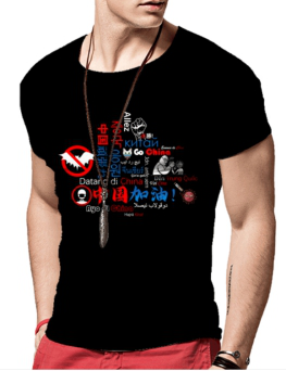 本设计主纹样采用多国语言的“中国加油!”,辅纹样采用口罩、蝙蝠(禁止)等多种元素组合而成,在疫情面前,地球村的心声是统一的,反映了抗疫的必胜决心。