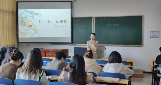 蒋丽萍老师以辽金元历史文化背景为切入点,简述了辽金元历史文化背景及其对服饰的影响,并结合遗存画迹、文献典籍、摹绘图片、出土实物图片讲解了契丹族与女真族服装、元代男女典型服装形制及辽金元男女发式与典型首服样式,重点讲解了质孙服、辫线袄子、宝里、海青衣的形制,使同学们对古代服饰有了更加直观和深入的了解。