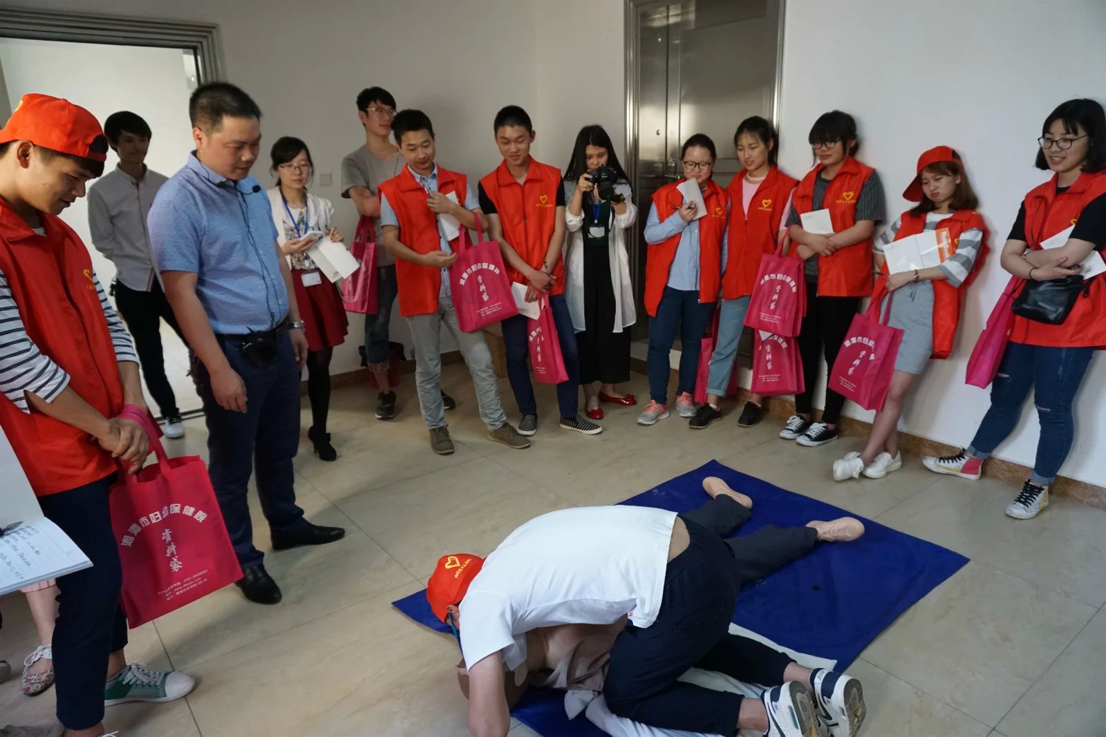 志愿者进行心肺复苏演练