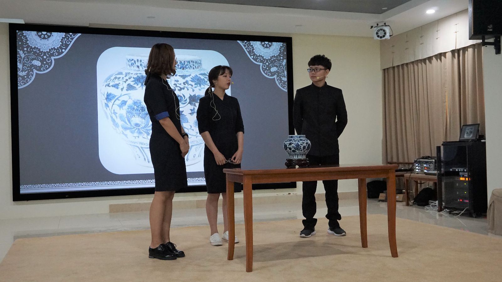 启动仪式上,公司志愿者上演了一场《元青花的前世今生》情景剧,描述了不同时代元青花的故事,详细介绍了元青花的起源、发展以及逐步盛行的历史。情景剧通过青花瓷的研究者与元青花器灵的对话,活灵活现地向大家呈现了湘潭市博物馆的镇馆之宝元青花的前世今生。