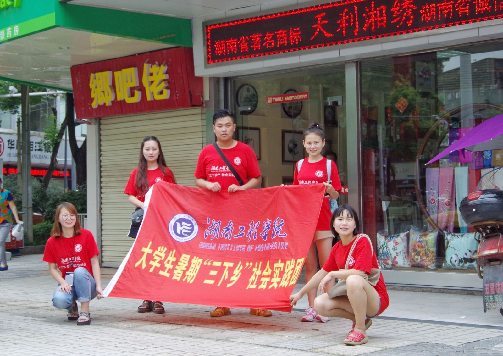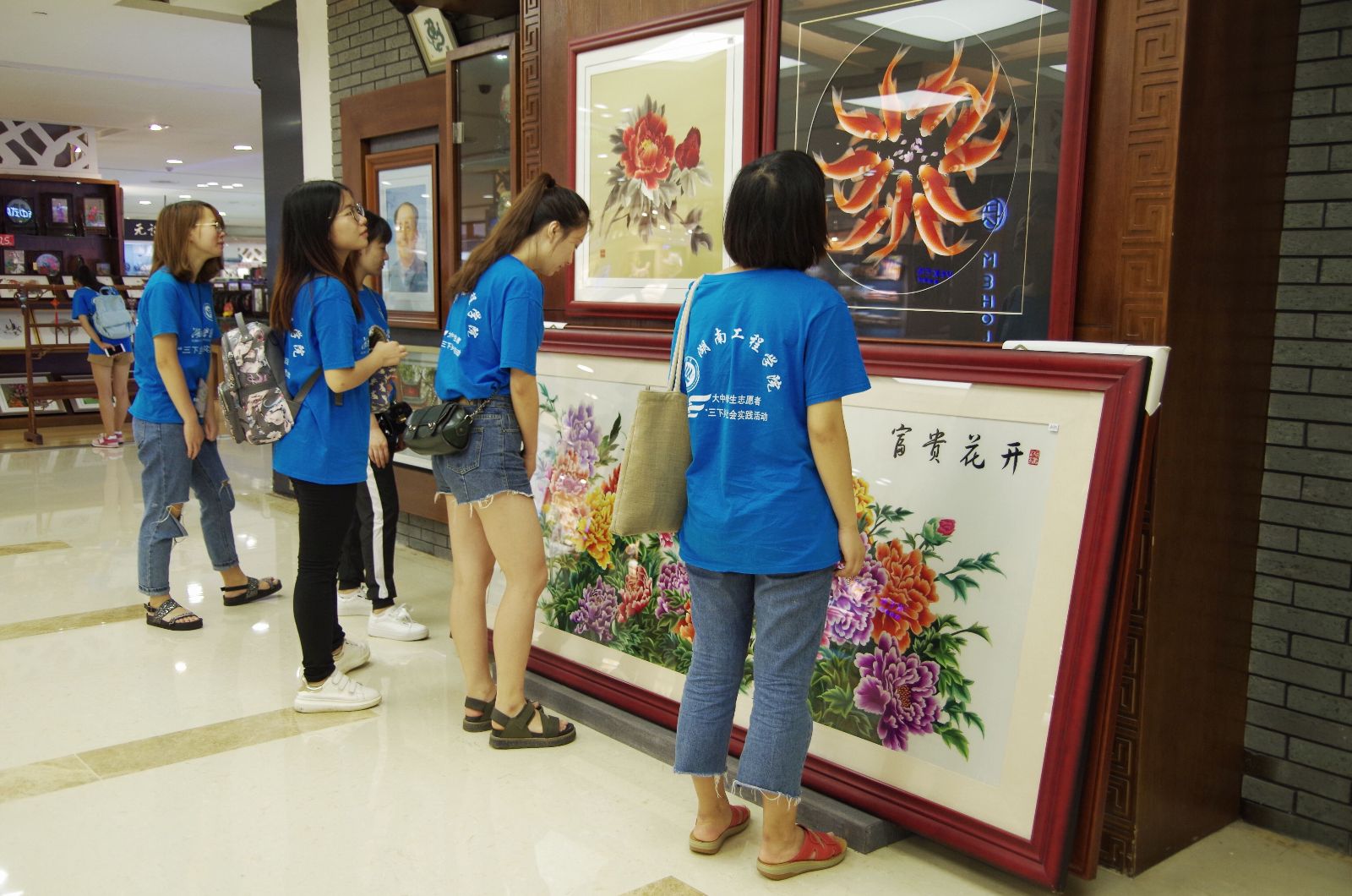 “三下乡”小组成员在“天利湘绣”形象店进行调研