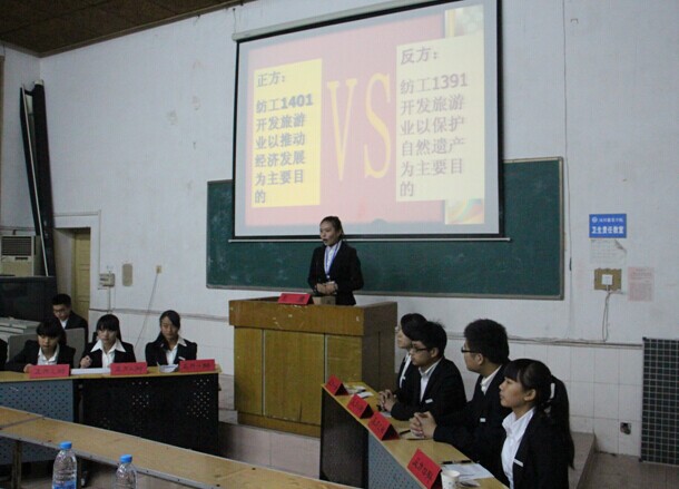 在经过数周的比拼中,最终脱颖而出的纺工1401班(正方)与纺工1391班(反方)进入了冠军争夺赛。正方辩题为“开发旅游业以推动经济发展为目的”,反方辩题则是“开发旅游业以保护自然遗产为目的”。辩论赛场上座无虚席,期待着他们的激昂陈词与精彩表现。