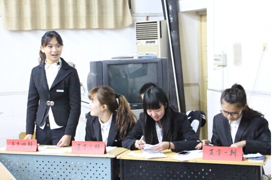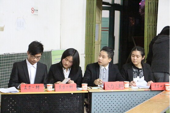 第二场比赛在服表1401班和服设1302班之间展开,两方实力都不容小觑,双方在“评价行为的善恶的标准是效果还是动机”展开了激烈讨论,双方辩友清晰的思路,敏捷的思维,巧妙的言辞,良好的风范,出色的口才,将赛场气氛一次又一次推向高潮,精彩不停,掌声不断。赢得观众一阵阵掌声,最后的结果也是难解难分,最终服表1401班以微弱优势赢得了四强的最后一张入场券。