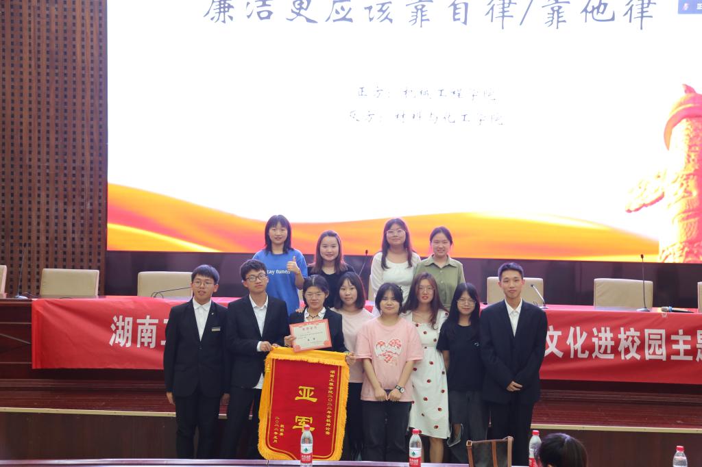 总决赛由正方机械工程公司与反方材料与化工公司就“廉洁更应该靠自律还是他律”为辩题展开辩论。赛场上辩论双方各抒己见,抓住对方逻辑漏洞,集中展开攻势,两方辩手你来我往、思路清晰、引经据典、慷慨激昂,妙语连珠引得台下掌声连连。