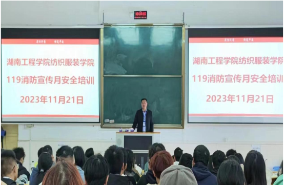 吴悔主任为大家详细介绍了灭火器、防火头套、自动灭火装置等设备的使用方法,也讲解了在逃生过程中毛巾、湿床单的使用方法。他特别提醒同学们在寝室不得使用违规电器,不私拉乱接,不在宿舍区域抽烟乱丢烟蒂,爱护消防器材;在实验室内服从实验教师的指导,正确操作实验设备。会后,在场师生就日常生活中遇到的各种消防常识争相向吴悔主任进行咨询,现场互动氛围积极,富有成效。纺织工程2302班寝室长徐佩琳激动说道:“这堂消防安全讲座太及时,让我们学到许多宿舍防火小技巧,今后我们一定积极当好“二把手”,将消防安全知识分享给身边的亲朋好友。